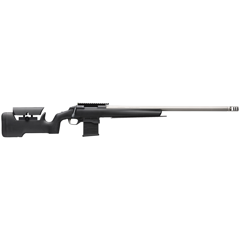 2023 SHOT Show Special – Specialized bolt-action target rifle aimed at production class competitions. Heavy bull barrel with Recoil Hawg muzzle brake. Nylon filled MAX stock with vertical grip. Factory-installed ARCA/Swiss rail for additional mounting options and faster adjustment.