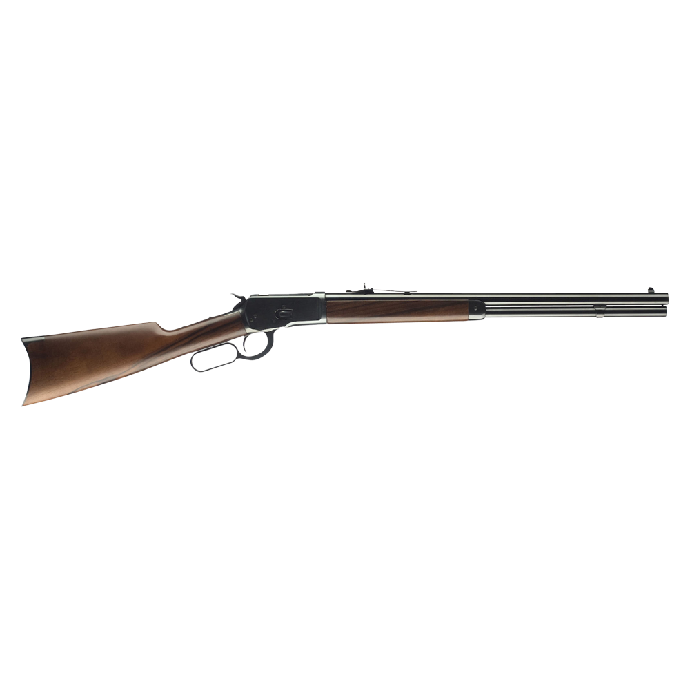 "Classic" does not fully do it justice. This Model 92 Short Rifle is in a classic round barrel configuration in two excellent calibres -- the 357 is suitable for hunting and Cowboy Action duties, while the 44 Rem. Mag. makes its mark as a great caliber for hunting in brushy conditions with fast moving game. Attention to detail is something you will notice like the one-piece steel crescent butt plate just like the originals, and a Marbles gold bead front sight that adds a dose of traditional class. This rifle features a convenient rear tang safety -- but don't despair, companies (like Marble's) offers one made to fit should you desire to add a tang sight later.