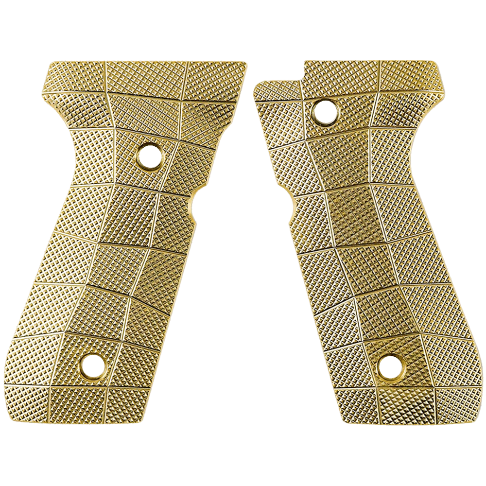 These thin grips Gridlok grips are suitable for the Beretta 92 and are CNC machined from solid brass for added weight. They feature GridLOK engraving with an aggressive checkering and are LokGrips most aggressive brass grips.