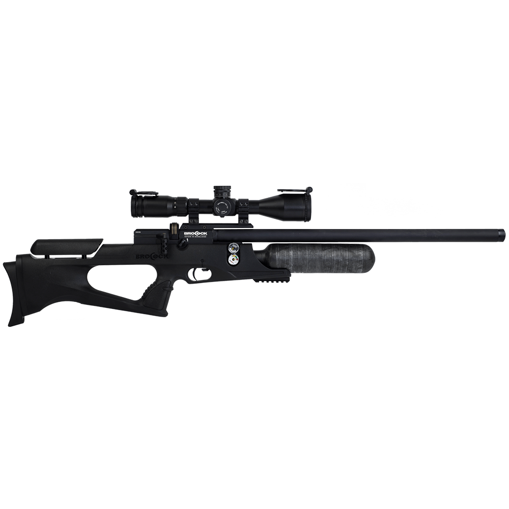 Brocock’s innovative semi-bullpup range has a super high-power version in the shape of the more powerful XR Magnum. Available in Calibres .22 and .25 the Sniper XR delivers up to 55ft/lbs of energy. The Sniper XR Magnum uses an advanced regulator system which is exclusively supplied to Brocock by Dutch regulator maestros HumaAir. With a longer 56cm’ Polygon match grade barrel the rifle can deliver up to 46ft/lbs of energy in a .22 configuration and 55ft/lbs in .25. The usual ‘power curve’ that unregulated PCPs suffer from has been eradicated as measured air control ensures minimal shot-to-shot deviation as the rifle cycles through its usable air charge, not only improving downrange accuracy but returning a shot count that reflects the hunting capabilities of this rifle.