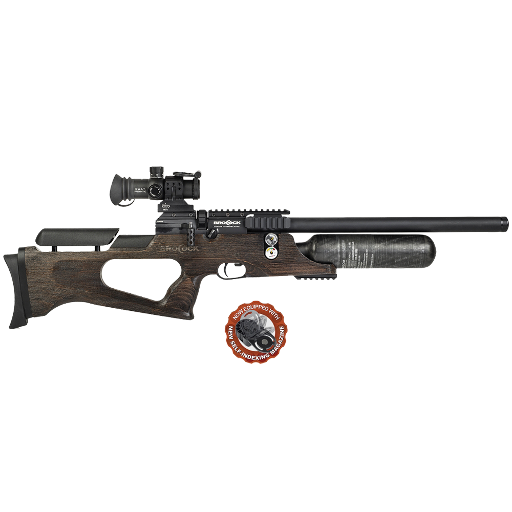 The Safari also sports Brocock’s all-new removable self-indexing magazine with flip-open loading gate – and retains all the XR line’s highly versatile features: the adjustable stock, on-the-fly power adjuster and match-feel, adjustable two-stage trigger. Its choked barrel is also complemented by an integral shrouded silencer and is available in two calibre options: .22/5.5mm and .25/6.35mm.
