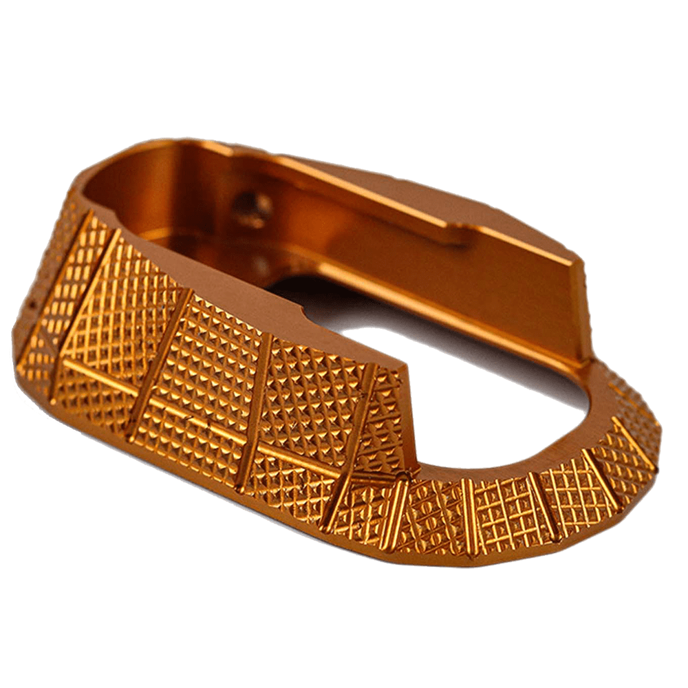 This magwell is CNC machined from solid 6061 Aluminum, anodized several colors, and features our aggressive GridLOK texture for increased grip. The shape & texture of this magwell matches up with the palm swell GridLOK grips to feel more like a seamless extension of the grip!