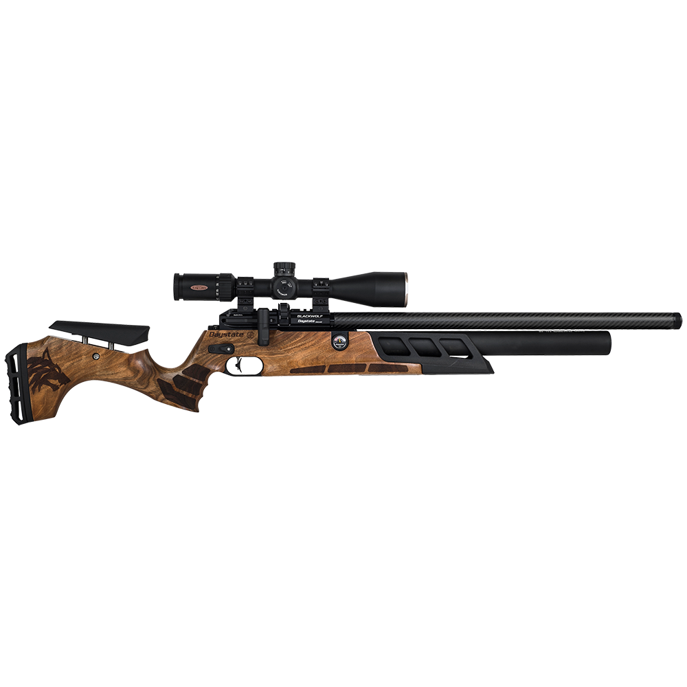 The Black Wolf .22 Walnut combines classic styling with modern PCP performance. Equipped with a 300cc cylinder and 23" barrel, it delivers reliable accuracy and consistency. The elegant walnut stock provides a traditional look while retaining all the advanced features for serious target and field shooting.