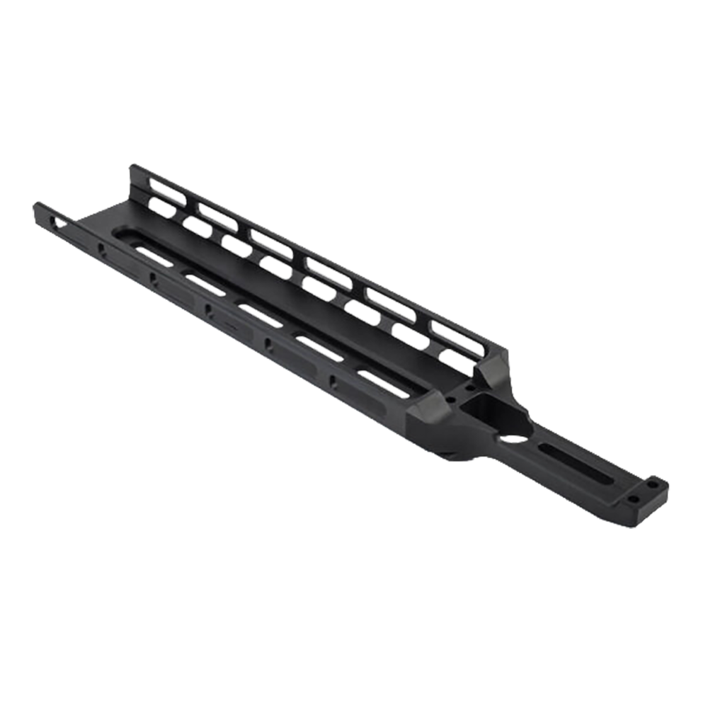 M-LOK, for Modular Lock, allows for direct accessory attachment onto the “negative space” (hollow slot) mounting points and is generally lighter than raised rail such as 3/8″ dovetail or Picatinny The forend rail has17 M-LOK slots to allow fitting of multiple range of aftermarket accessories.