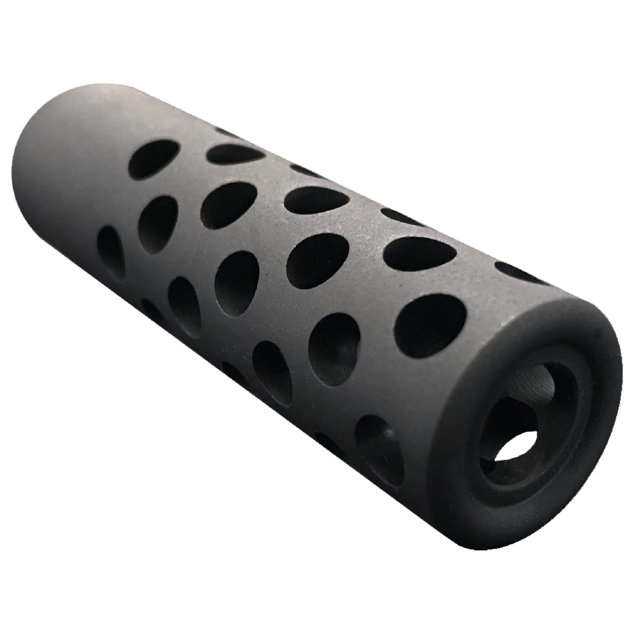 Designed for calibres up to .30cal. These brakes are an easy, convenient screw on design that do not require any crush washers or special tools. Just screw the muzzle brake on all the way to the shoulder of your barrel and then fasten tight with the tool provided. Due to the perfectly aligned machined gas ports, this design disperses energy evenly around the brake, creating greater balance thus eliminating deviation from the muzzle blast.