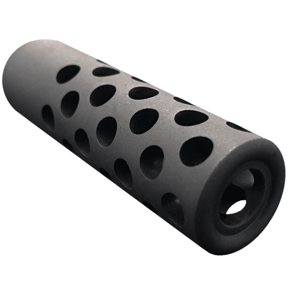 Designed for calibres up to .30cal. These brakes are an easy, convenient screw on design that do not require any crush washers or special tools. Just screw the muzzle brake on all the way to the shoulder of your barrel, then fasten tight with the tool provided. Due to the perfectly aligned machined gas ports, this design disperses energy evently around the brake, creating greater balance, thus eliminating deviation from the muzzle blast.