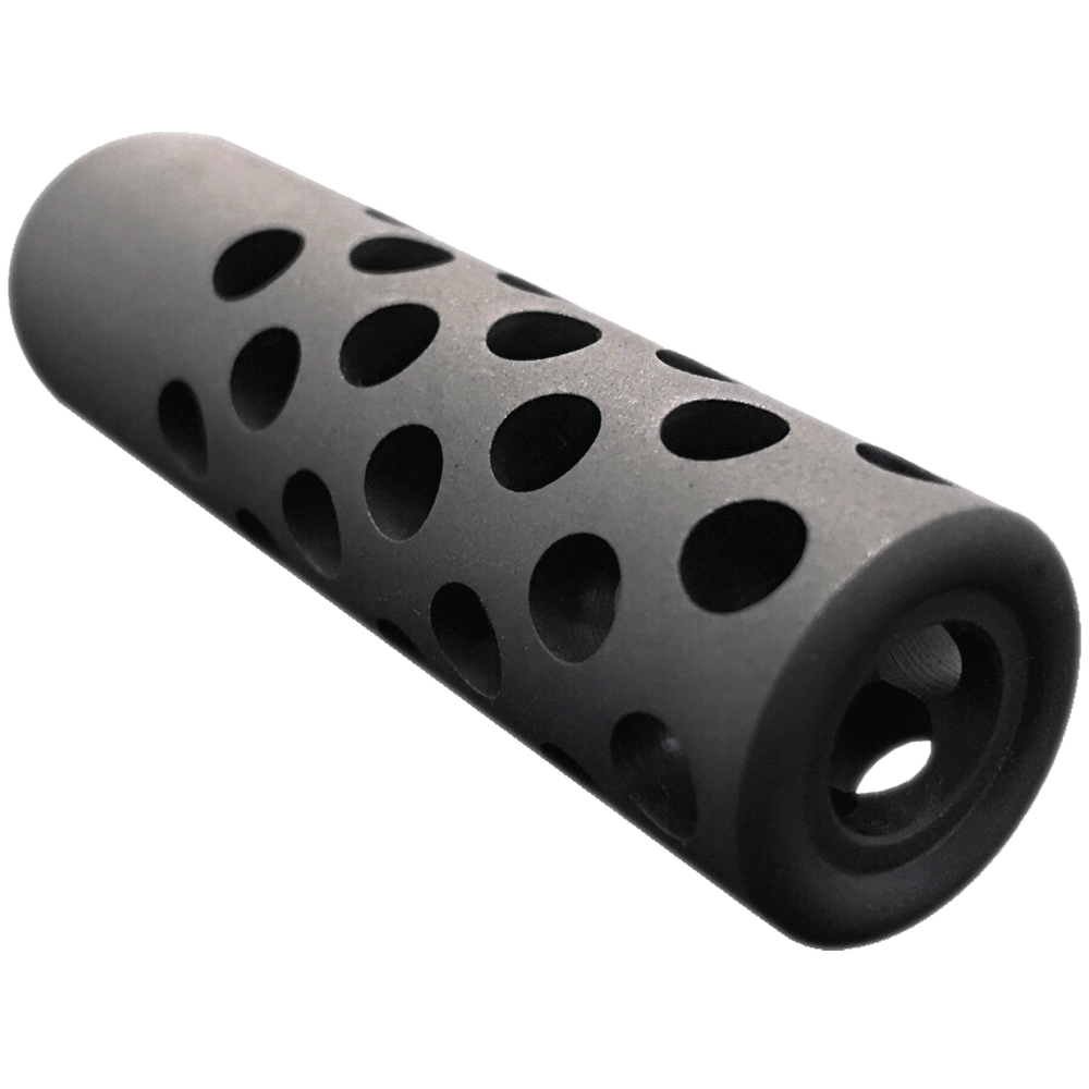 Designed for calibres up to 45/70. These brakes are an easy, convenient screw on design that do not require any crush washers or special tools. Just screw the muzzle brake on all the way to the shoulder of your barrel, then fasten tight with the tool provided. Due to the perfectly aligned machined gas ports, this design disperses energy evently around the brake, creating greater balance, thus eliminating deviation from the muzzle blast.