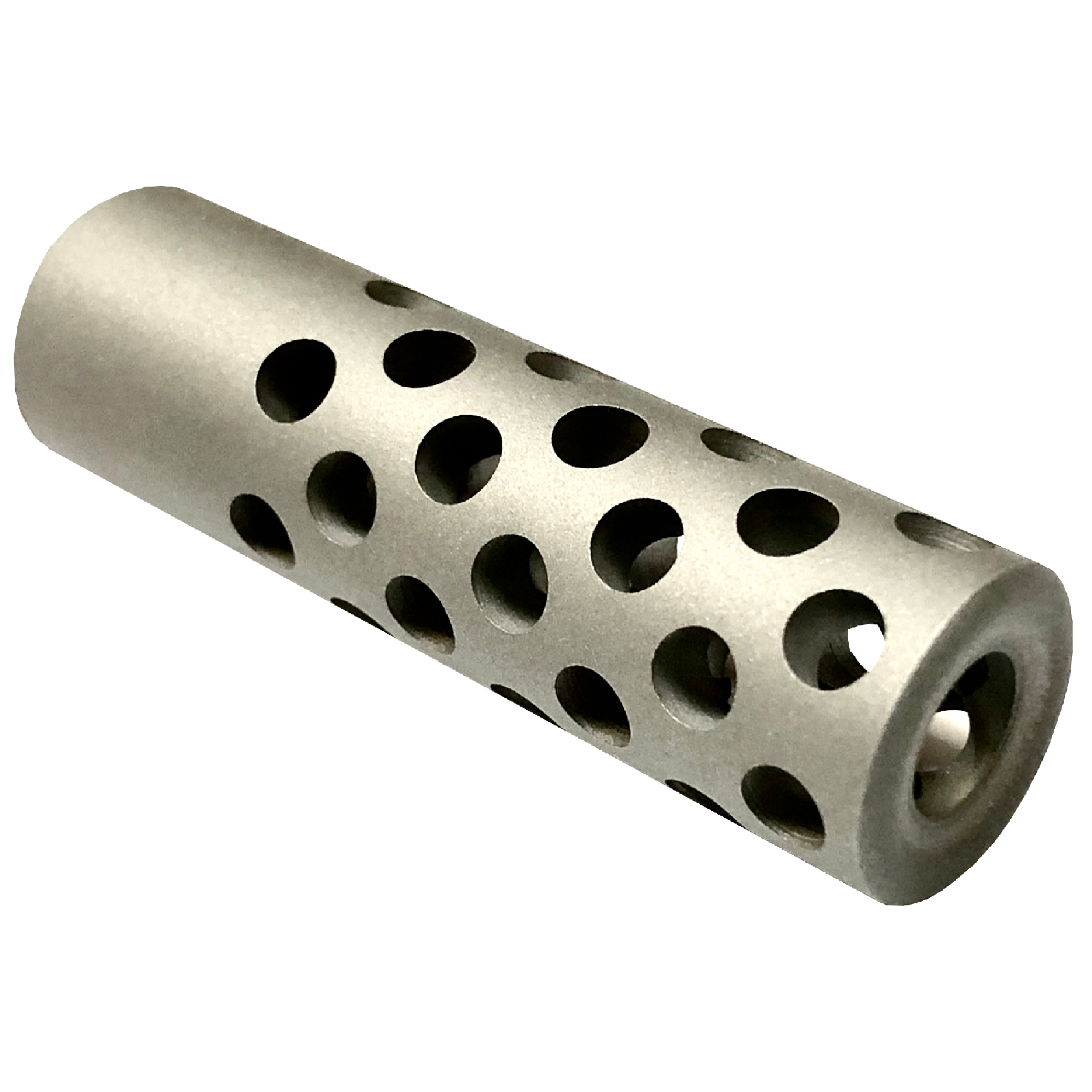 Designed for calibres up to .30cal. These brakes are an easy, convenient screw on design that do not require any crush washers or special tools. Just screw the muzzle brake on all the way to the shoulder of your barrel and then fasten tight with the tool provided. Due to the perfectly aligned machined gas ports, this design disperses energy evenly around the brake, creating greater balance thus eliminating deviation from the muzzle blast.