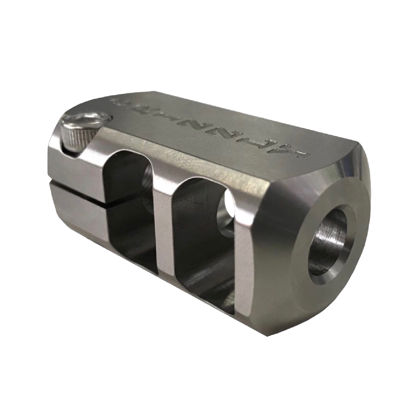 Designed for calibres up to .338cal. These brakes are an easy, convenient screw on design that do not require any crush washers or special tools. Just screw the muzzle brake on all the way past the shoulder, align it square on the barrel and then tighten the small allen key bolt on the side of the brake. This compact brake will accommodate every barrel size up to 18mm with or without a M14x1 thread.