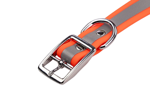 Celebrate the rich heritage of hunting while providing unparalleled durability and style with the King Buck Waterproof Soft-Touch Reflective Dog Collar. This high-vis upland orange collar features a reflective stripe that runs the entire length, enhancing visibility during low-light conditions.