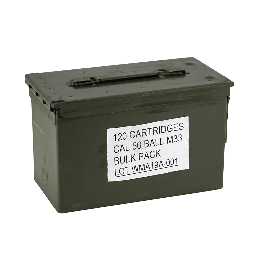 Winchester 50BMG 650gr Ball ammunition bulk pack containing 120 cartridges for long range target shooting.