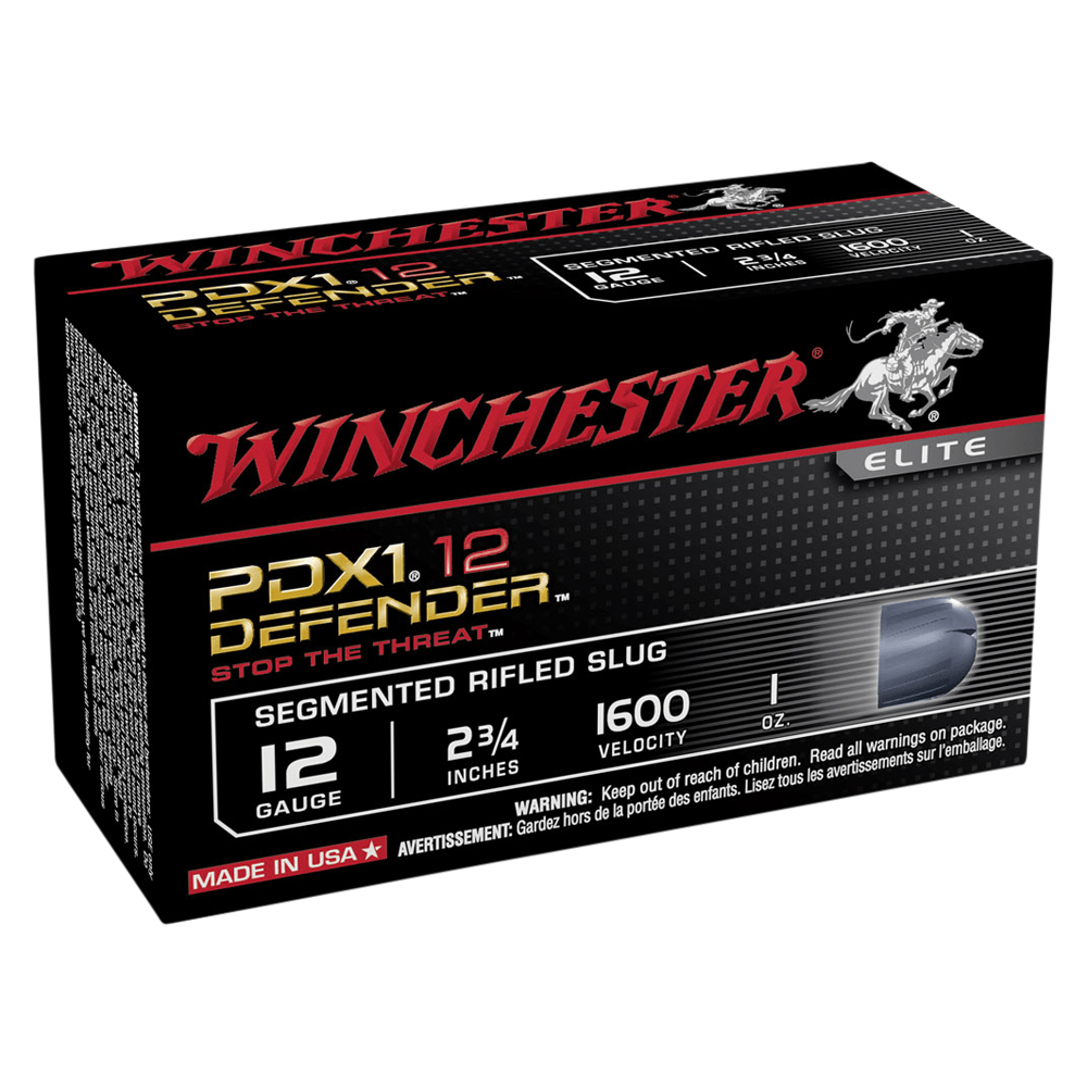 PDX1 Defender 12-gauge ammunition features a distinctive black hull, black oxide high-base head and a 1 oz segmenting rifled slug. Upon impact, the slug breaks into three equal segments compensating for aim error and providing critical penetration. This unique design is applicable for short and long range situations.