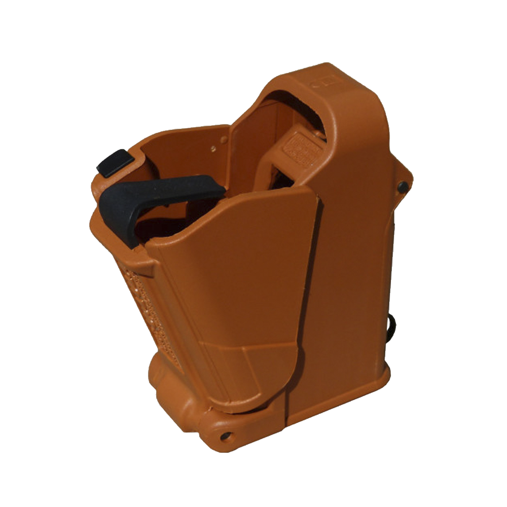 The UpLULA™ is a military-grade, pocket-size, universal pistol magazine loader and unloader designed to load and unload virtually all*  9mm Luger up to .45ACP single and double stack magazines of all manufacturers. It also loads most .380ACP single and double-stack mags, and 1911’s mags. The UpLULA™ loader does it all easily, reliably, and painlessly!