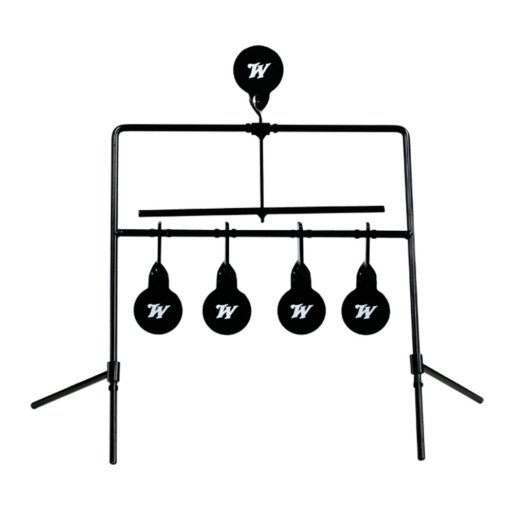 This Auto Reset Shooting Target lets you perfect your rapid gun-slinging! Just hit the four hanging targets, and the resetting target, and all four targets will easily drop back down to give you another round of rapid fire fun. Get as much target practice as you want without the hassle of having to continuously pull cords or walking downrange to reset your targets. Suitable for 22LR 395mm wide 530mm high