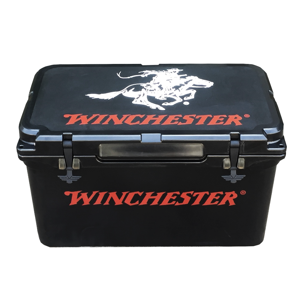 Keep your food and drinks cooler during summer with this Black 65L plastic esky featuring the renowned Winchester horse and rider logo.